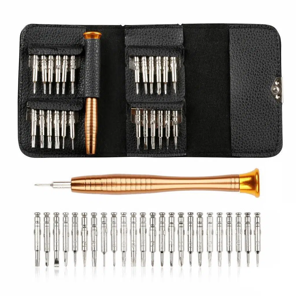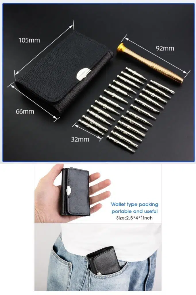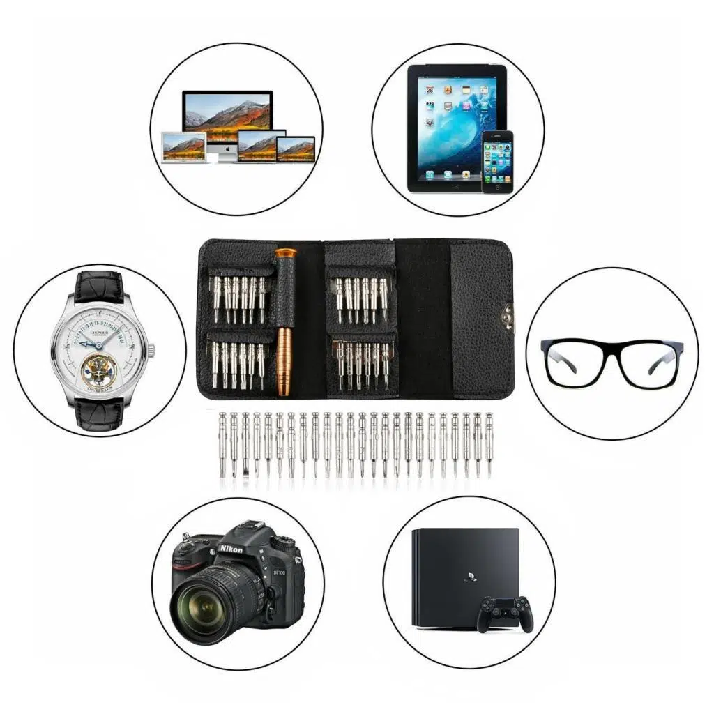 25 Parça Mıknatıslı Tornavida Seti Deri Çantalı Laptop Gözlük Saat Tamir modelleri