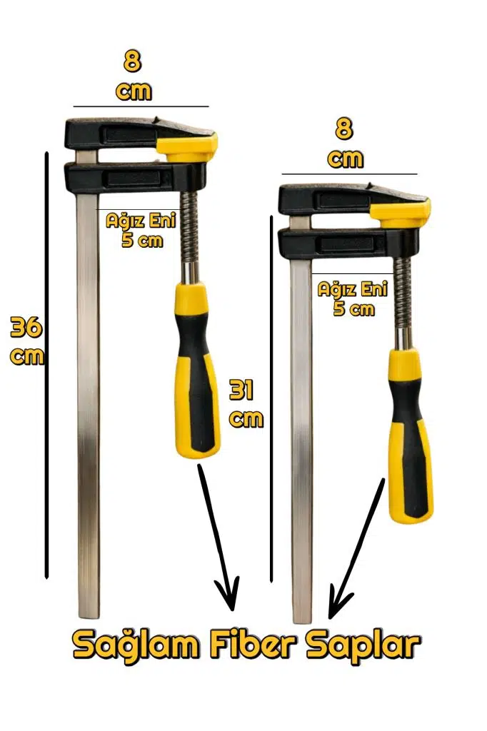 2 Adet F Tipi İşkence 50x300mm ve 50x250 mm Fiber Saplı Mengene El Aletleri
