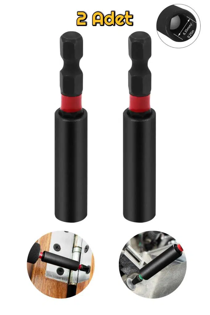 2 Adet Manyetik Bits Uç Uzatma Adaptörü 60 mm Manyetik Uç Tutucu Matkap Uçları