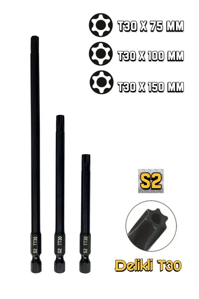 3’lü Delikli T30 Torx Bits Uç Set 150 mm-100 mm-75 mm T30 Bits Uç S2 Çelik modelleri