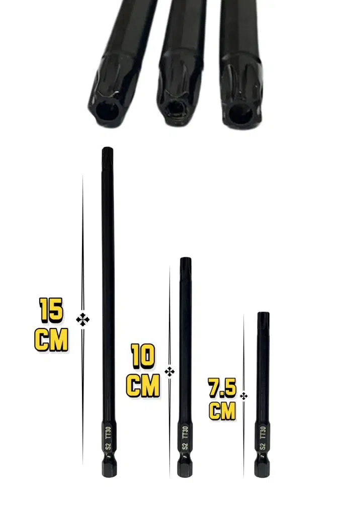 3’lü Delikli T30 Torx Bits Uç Set 150 mm-100 mm-75 mm T30 Bits Uç S2 Çelik