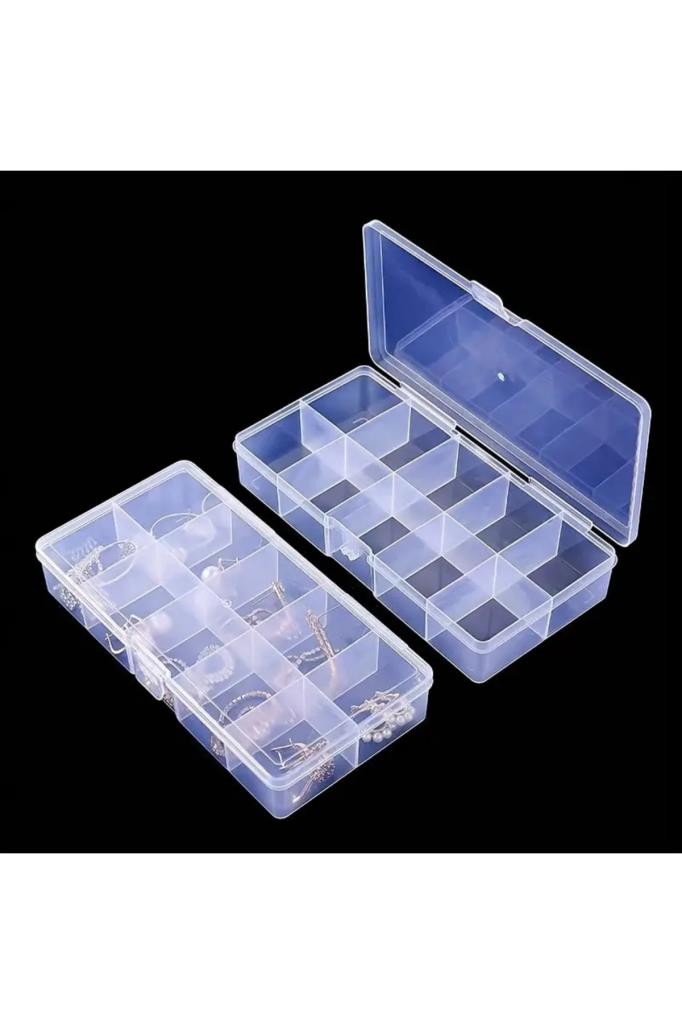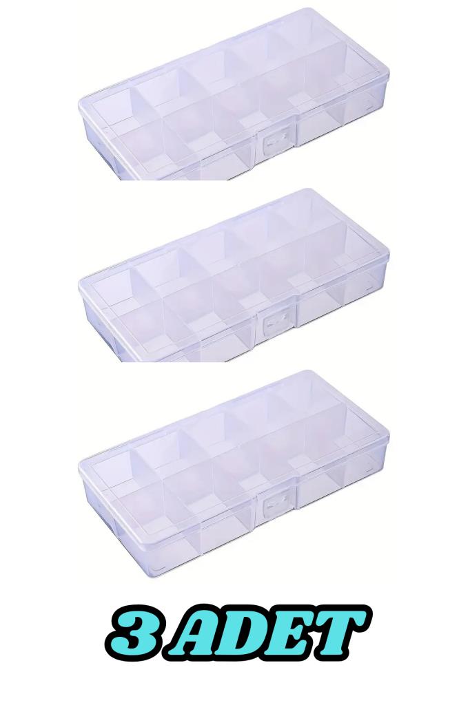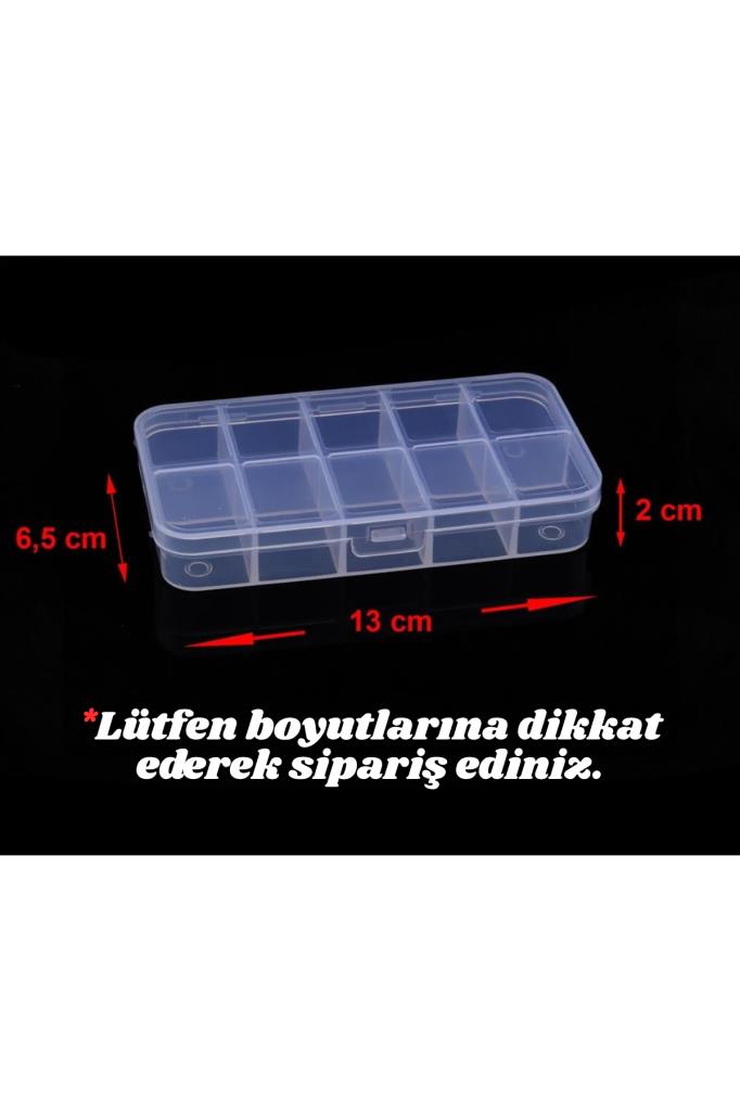 3 Adet 10 Bölmeli Mini Takı Boncuk Organizeri Kapaklı Plastik Kutu 13 cm