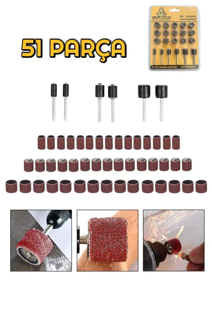Toplam 51 parçadan oluşan bu set içerisinde 45 adet zımpara 6 adet de adaptör bulunmaktadır.