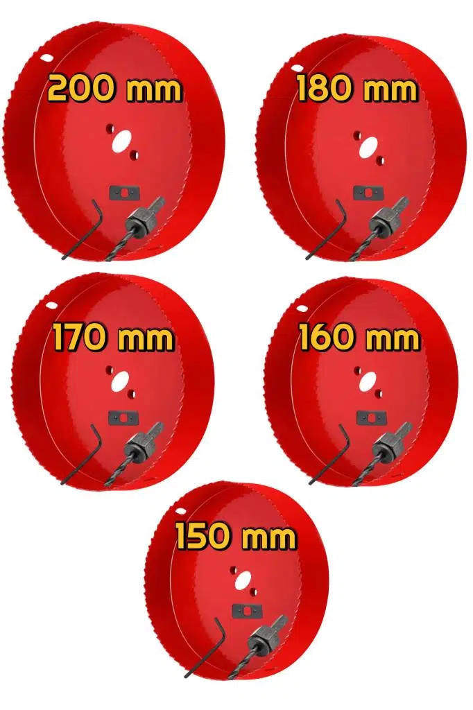5’li Alçıpan Plastik Ahşap Panç ve Adaptör Seti 150 mm 160 mm 170 mm 180 mm 200 mm Matkap Uçları