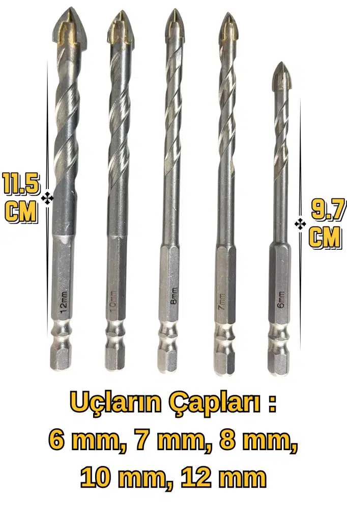 5 Parça Cam Seramik Delme Matkap Uç 6-7-8-10-12 mm çeşitleri