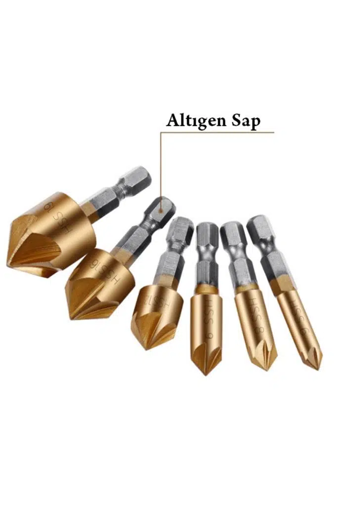 6 Parça Titanyum Kaplama HSS Havşa Açma Matkap Uç Seti modelleri