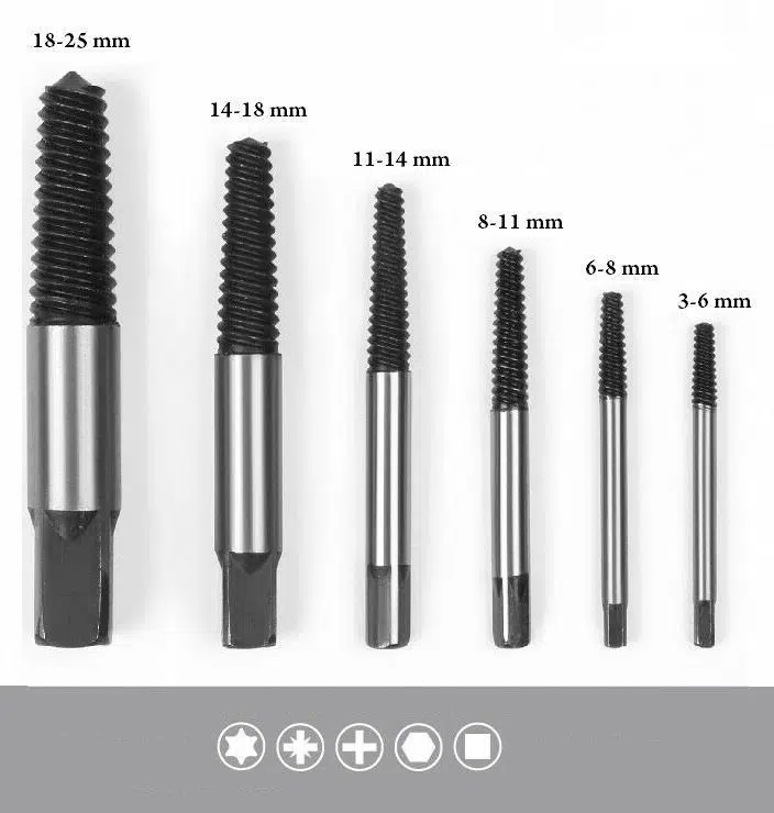 Standart bir tornavida ile çıkarılamayan hasarlı vidaları çıkarmaya yarayan 6 parça muhteşem bir set.