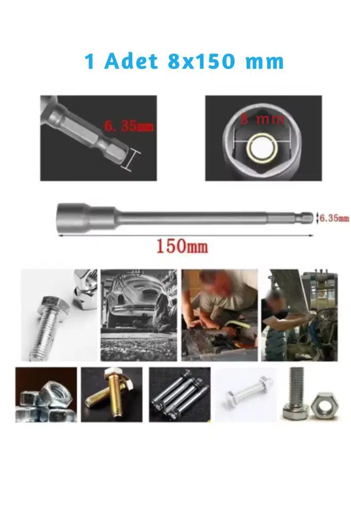 8 mm somun , cıvata sökmeye takmaya uygun ekstra uzun adaptördür.