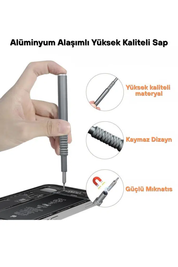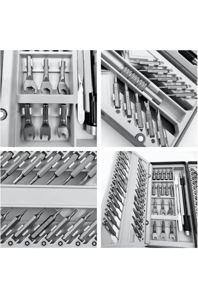 Ortalama bir insan eli kadar bir kutuya sahip bu ürün ile envai çeşit vidaya somuna sahip her türlü elektronik cihaz laptop bilgisayar, gözlük, saat , telefon ve daha bir çok cihazı keyifle tamir edebileceksiniz.