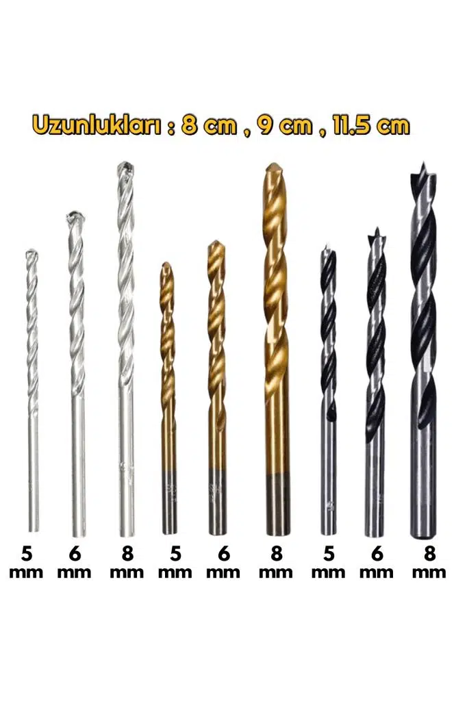 9 Parça Ahşap Beton Metal Delme Matkap Ucu 5-6-8 mm
