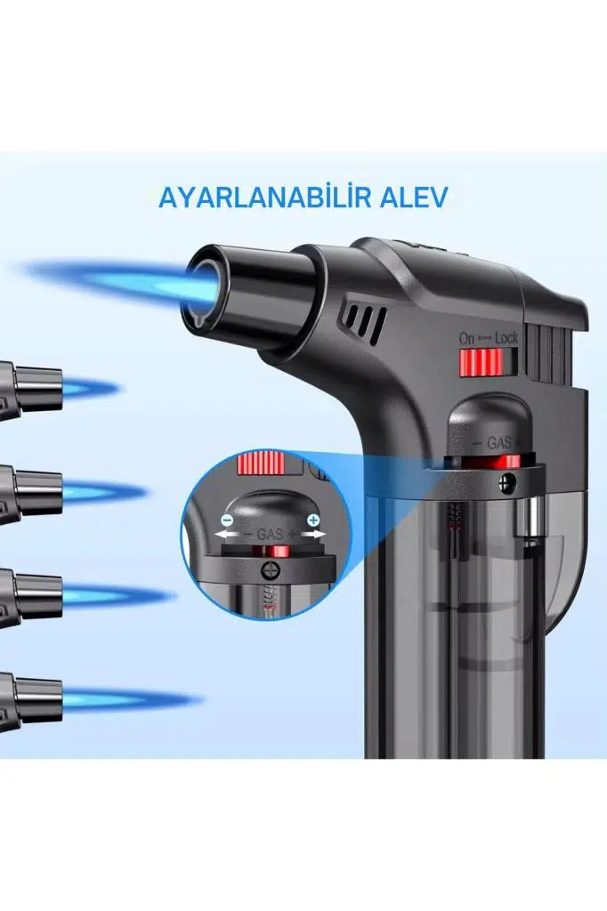 Alev ayarlama ve alev kilitleme özelliği mevcuttur.