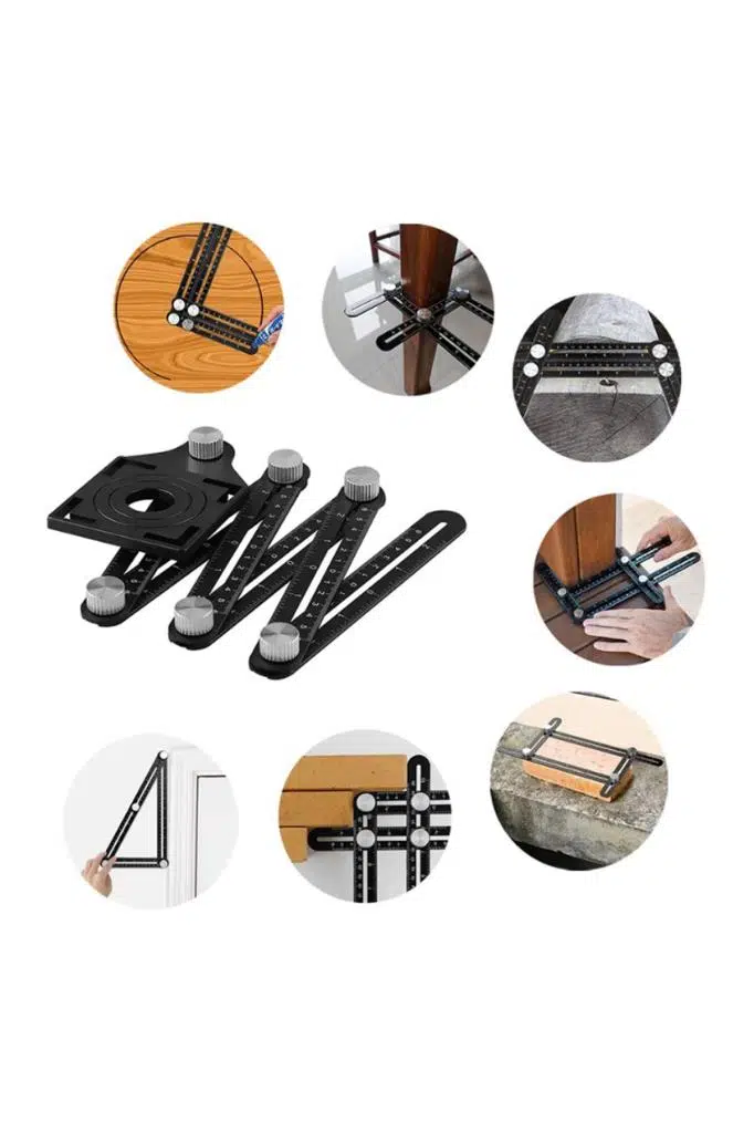 Yeni geliştirilen evrensel açı cetvelimiz, altı parçalı bir cetvel ve serbestçe katlanan altı metal topuzu var.