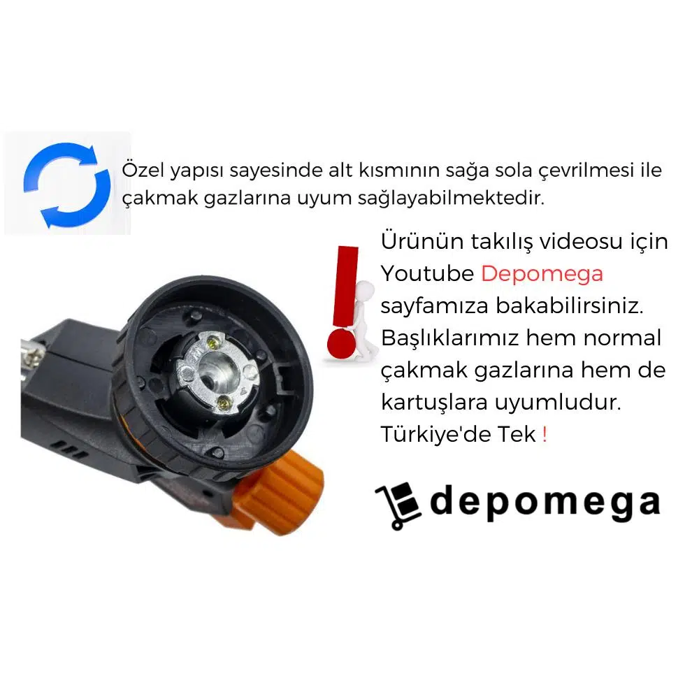 NOT: Pürmüz başlığı çakmak gazlarına takarken önce başlığı gaza takar gibi bastırıyoruz . Daha sonrasında pürmüz başlığın alt kısmı ile gazı birlikte tutarken pürmüz başlığın üst kısmını sağa çevirdiğinizde kilitlenecektir.
